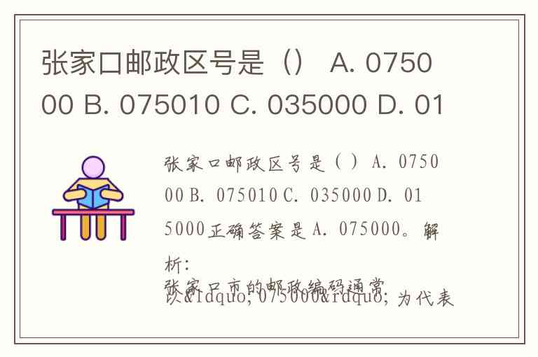 张家口邮政区号是() A. 075000 B. 075010 C. 035000 D. 015000