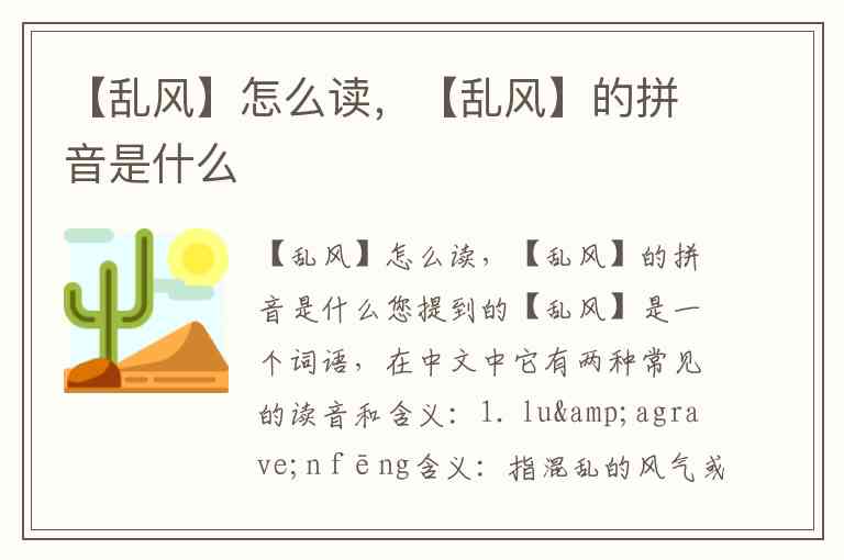 您提到的【乱风】是一个词语,在中文中它有两种常见的读音和含义: