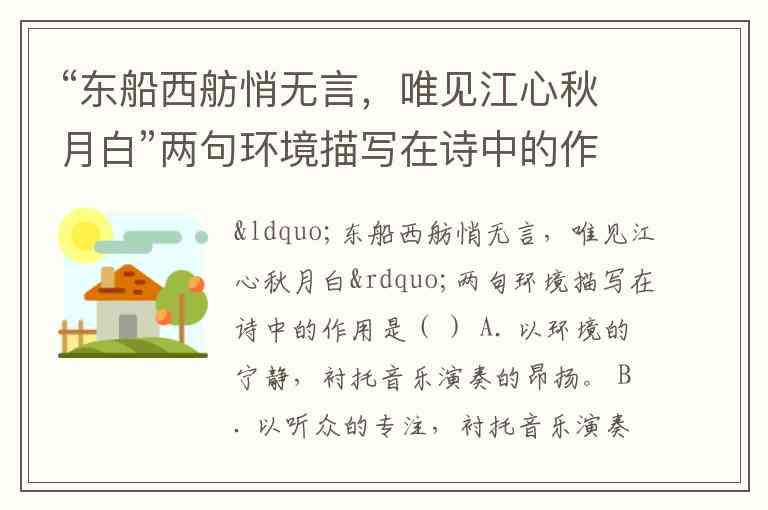“东船西舫悄无言,唯见江心秋月白”两句环境描写在诗中的作用是( ) A. 以环境的宁静,衬托音乐演奏的昂扬。 B. 以听众的专注,衬托音乐演奏的成功。 C. 以环境的静寂,表现听众完全沉浸在音乐声中。 D. 渲染静寂的气氛,烘托听众凄切的情感。
