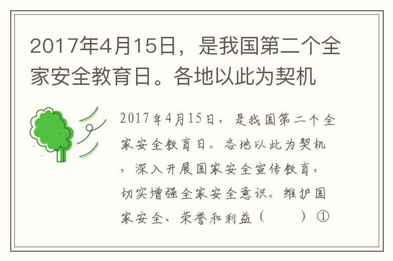 2017年4月15日,是我国第二个全家安全教育日。各地以此为契机,深入开展国家安全宣传教育,切实增强全家安全意识。维护国家安全、荣誉和利益( ) ①是公民参与国家管理的基础和标志 ②是公民应履行的政治性义务 ③是公民爱国主义精神的要求和体现 ④是国家赋予公民的神圣权利。 A. ①② B. ①④ C. ②③ D. ③④