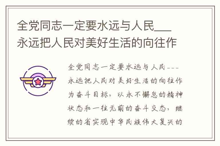 “全党同志一定要永远与人民同呼吸、共命运、心连心,永远把人民对美好生活的向往作为奋斗目标,以永不懈怠的精神状态和一往无前的奋斗姿态,继续朝着实现中华民族伟大复兴的宏伟目标奋勇前进。”