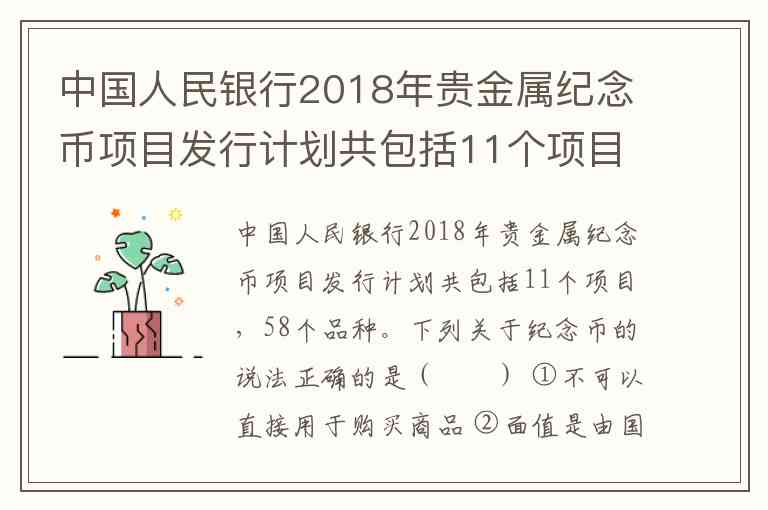 中国人民银行2018年贵金属纪念币项目发行计划共包括11个项目,58个品种。下列关于纪念币的说法正确的是( ) ①不可以直接用于购买商品 ②面值是由国家规定的 ③本质是一般等价物 ④仅具有纪念和收藏价值 A. ①③ B. ②③ C. ②④ D. ③④