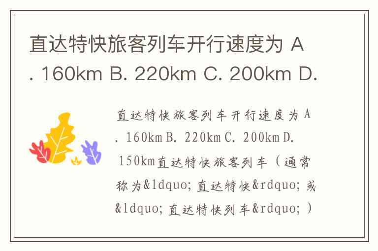 直达特快旅客列车开行速度为 A. 160km B. 220km C. 200km D. 150km