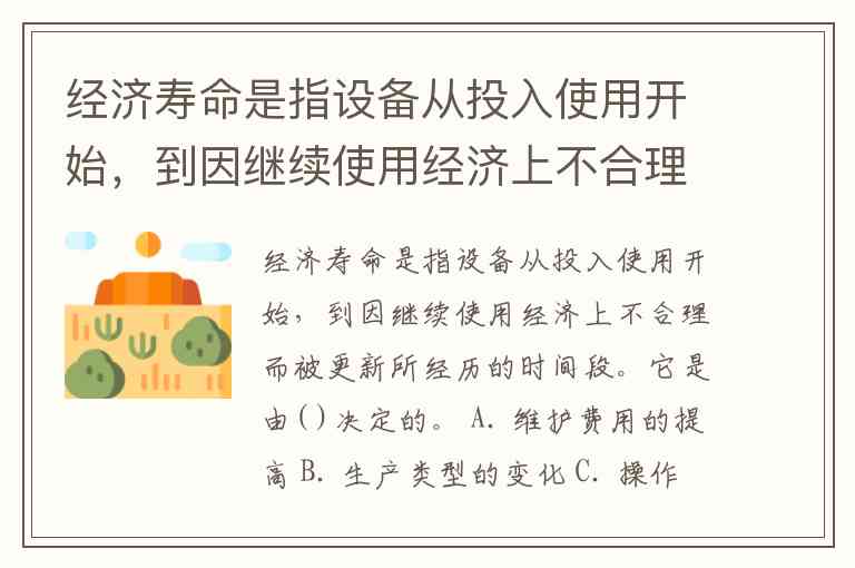 经济寿命是指设备从投入使用开始,到因继续使用经济上不合理而被更新所经历的时间段。它是由( )决定的。 A. 维护费用的提高 B. 生产类型的变化 C. 操作水平的提高 D. 使用价值的降低 E. 环境要求的提高