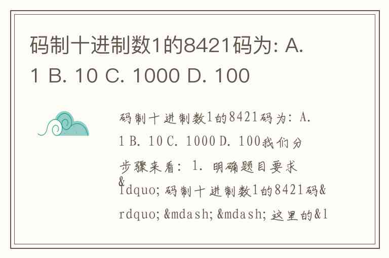 码制十进制数1的8421码为: A. 1 B. 10 C. 1000 D. 100