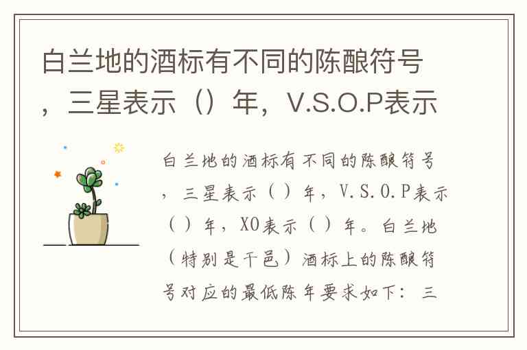 白兰地(特别是干邑)酒标上的陈酿符号对应的最低陈年要求如下: