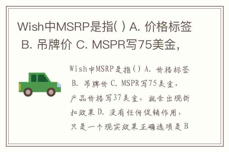 Wish中MSRP是指( ) A. 价格标签 B. 吊牌价 C. MSPR写75美金,产品价格写37美金,就会出现折扣效果 D. 没有任何促销作用,只是一个现实效果