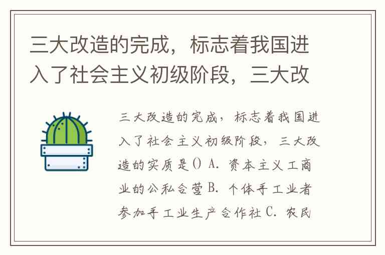 三大改造的完成,标志着我国进入了社会主义初级阶段,三大改造的实质是() A. 资本主义工商业的公私合营 B. 个体手工业者参加手工业生产合作社 C. 农民参加合作社 D. 把生产资料私有制转变为社会主义公有制