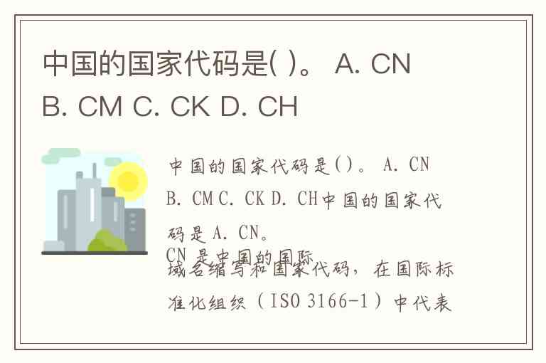 中国的国家代码是( )。 A. CN B. CM C. CK D. CH