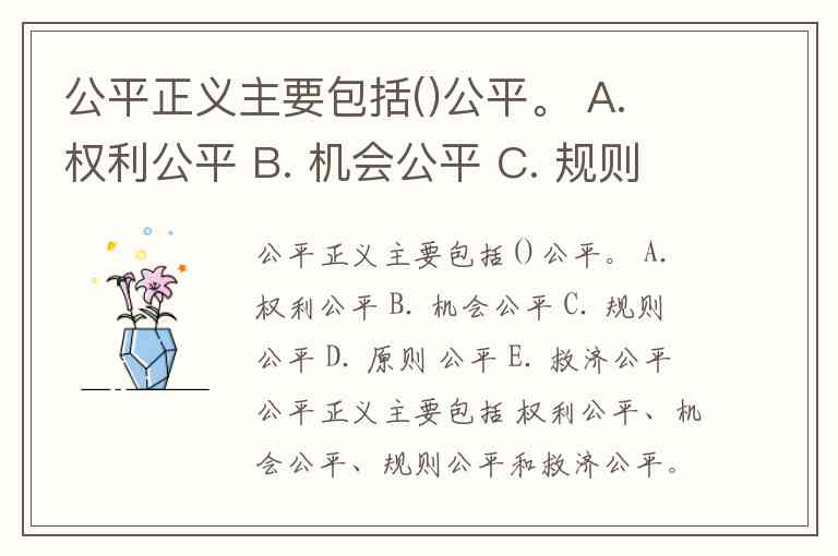 公平正义主要包括 权利公平、机会公平、规则公平和救济公平。