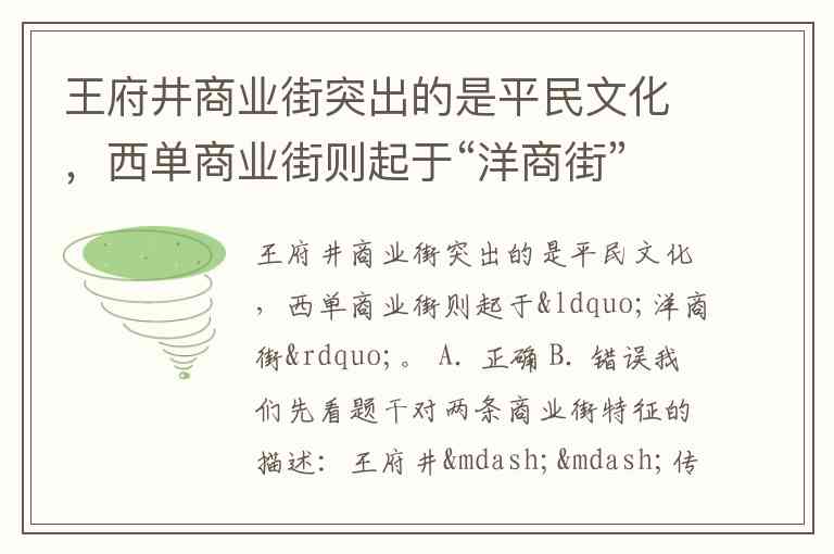 原题说“王府井突出平民文化”(错,应更偏向高端/旅游商业),“西单起于洋商街”(错,洋商聚集更偏向王府井一带)。