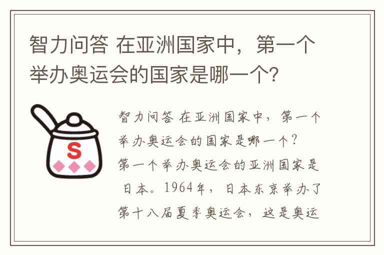 智力问答 在亚洲国家中,第一个举办奥运会的国家是哪一个?