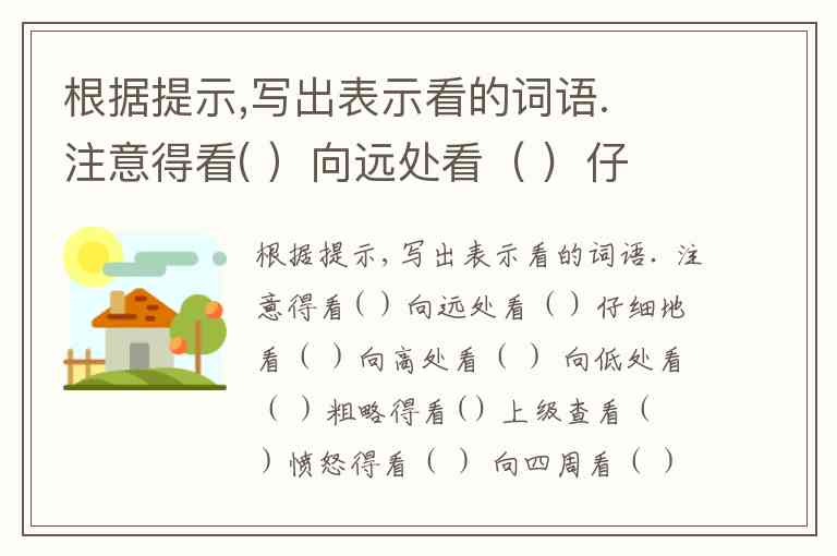 根据提示,写出表示看的词语. 注意得看( )向远处看( ) 仔细地看( )向高处看( ) 向低处看( )粗略得看( ) 上级查看( )愤怒得看( ) 向四周看( )亲眼看到( )