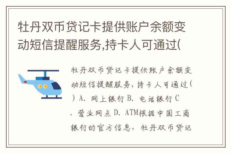 牡丹双币贷记卡提供账户余额变动短信提醒服务,持卡人可通过( ) A. 网上银行 B. 电话银行 C. 营业网点 D. ATM