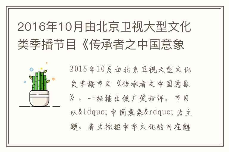 题干强调《传承者之中国意象》节目以“中国意象”为主题,挖掘中华文化的内在魅力,展现传统与现代的融合、经典与创新的结合。