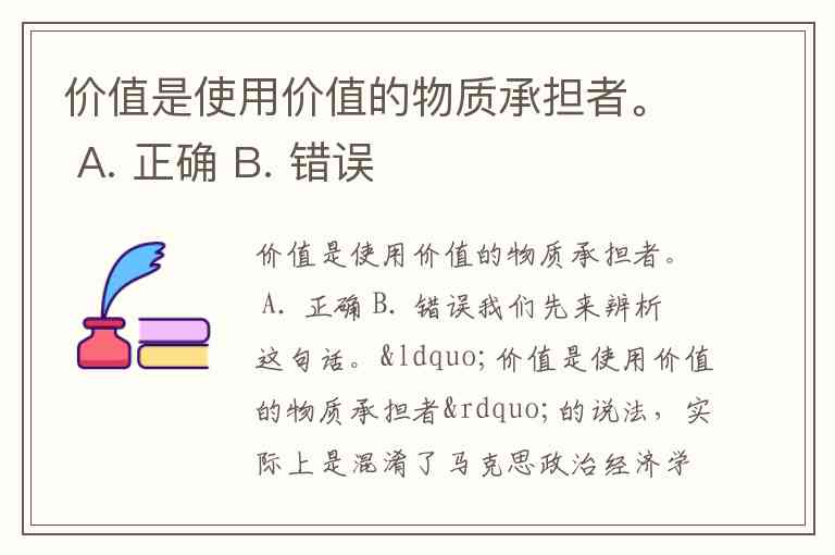 因此原句“价值是使用价值的物质承担者”颠倒了关系,正确的是“使用价值是价值的物质承担者”。
