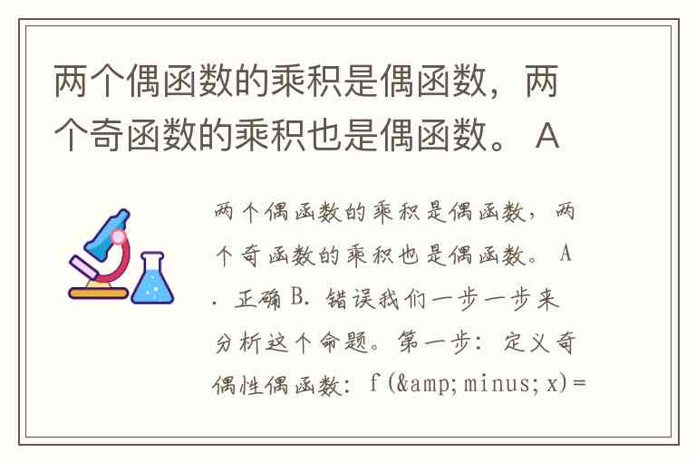两个偶函数的乘积是偶函数,两个奇函数的乘积也是偶函数。 A. 正确 B. 错误