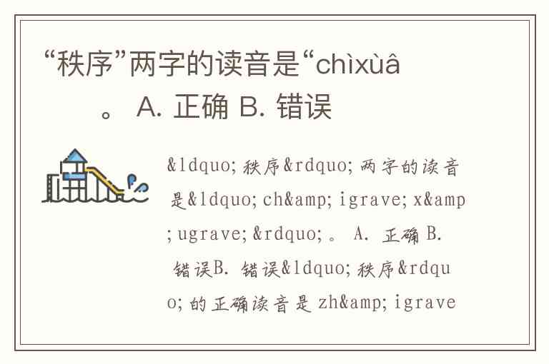“秩序”两字的读音是“chìxù”。 A. 正确 B. 错误