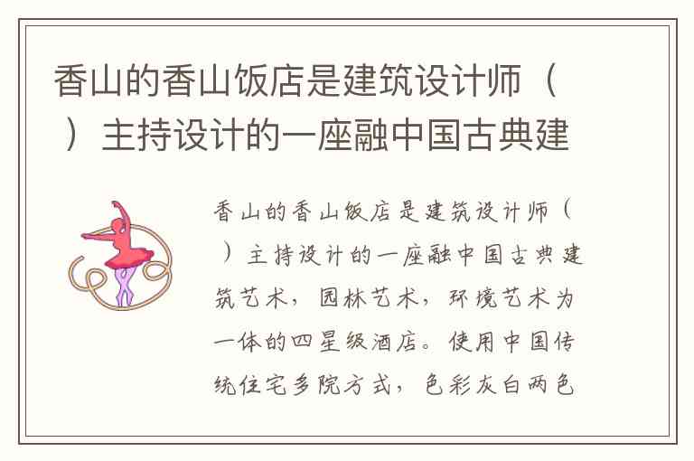 香山饭店是由美籍华裔建筑大师 贝聿铭 主持设计的。