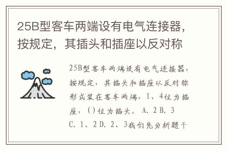 更常见的解释是:25B客车每端有 2 个电气连接器(左、右各一),车的一端:一个插头,一个插座;车的另一端:与这一端相反,所以插头插座位置对调。