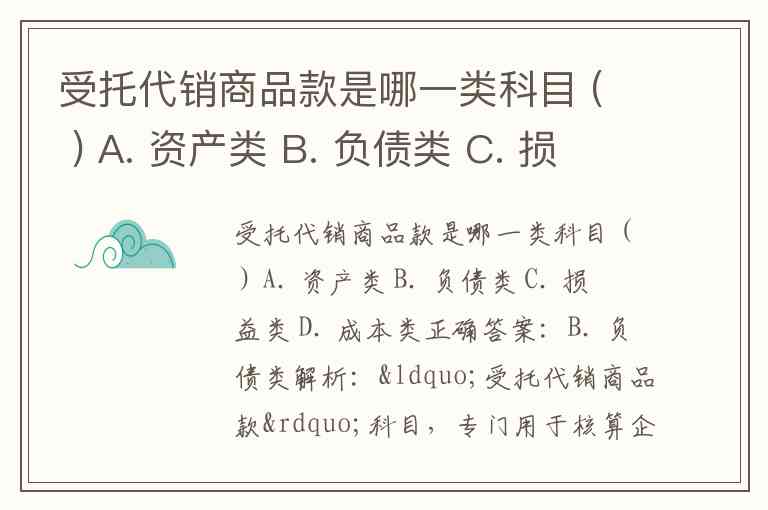 受托代销商品款是哪一类科目 ( ) A. 资产类 B. 负债类 C. 损益类 D. 成本类