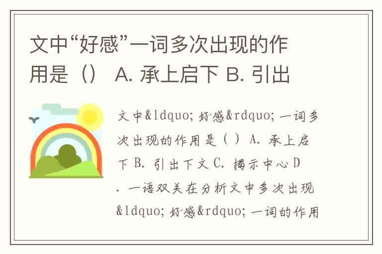 文中“好感”一词多次出现的作用是() A. 承上启下 B. 引出下文 C. 揭示中心 D. 一语双关