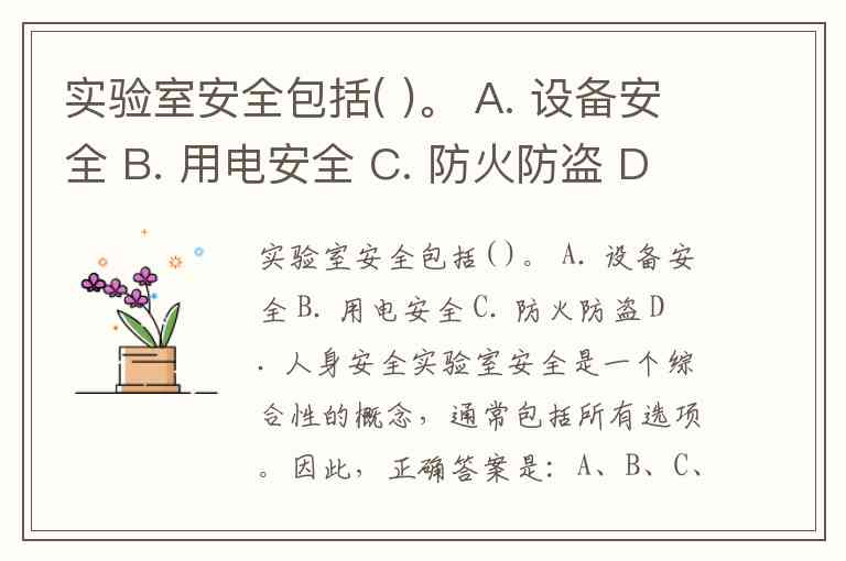 实验室安全包括( )。 A. 设备安全 B. 用电安全 C. 防火防盗 D. 人身安全