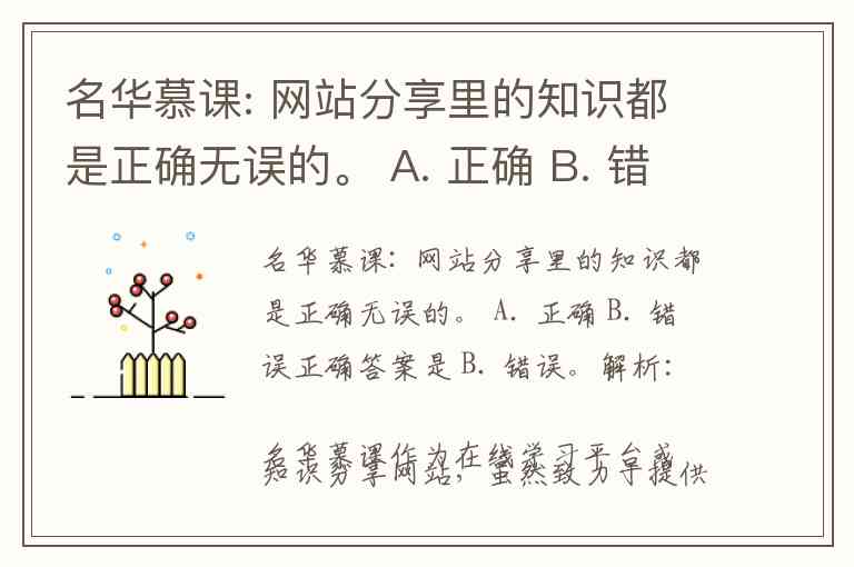 名华慕课: 网站分享里的知识都是正确无误的。 A. 正确 B. 错误