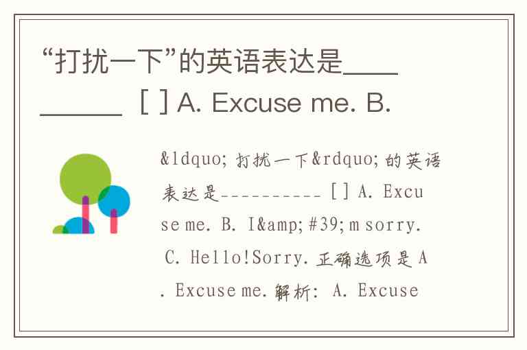 “打扰一下”的英语表达是__________ [ ] A. Excuse me. B. I'm sorry. C. Hello!Sorry.