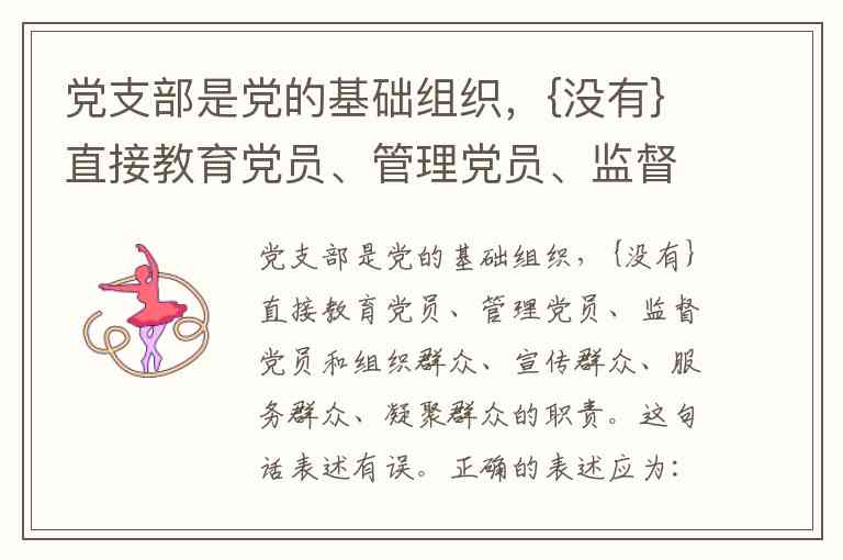 党支部是党的基础组织,{没有}直接教育党员、管理党员、监督党员和组织群众、宣传群众、服务群众、凝聚群众的职责。