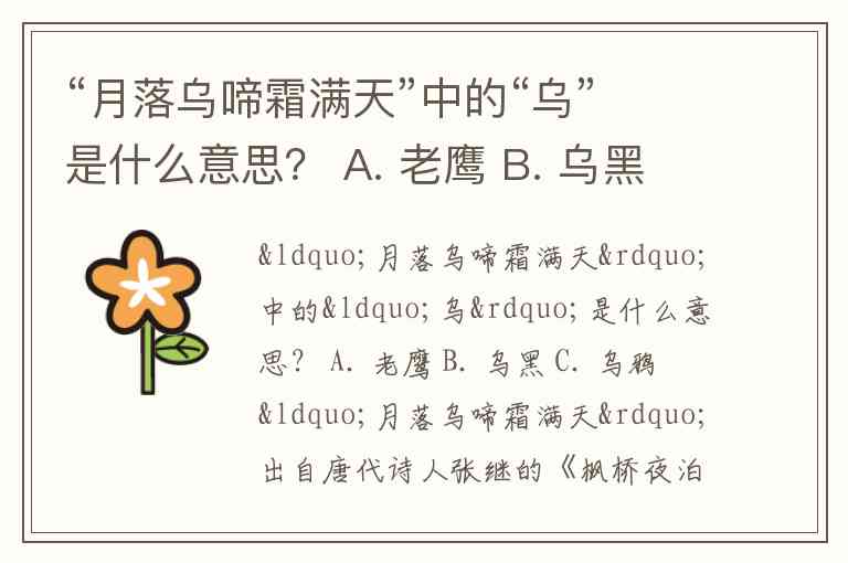 “月落乌啼霜满天”中的“乌”是什么意思? A. 老鹰 B. 乌黑 C. 乌鸦
