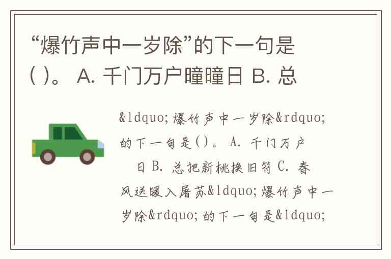 “爆竹声中一岁除”的下一句是( )。 A. 千门万户曈曈日 B. 总把新桃换旧符 C. 春风送暖入屠苏