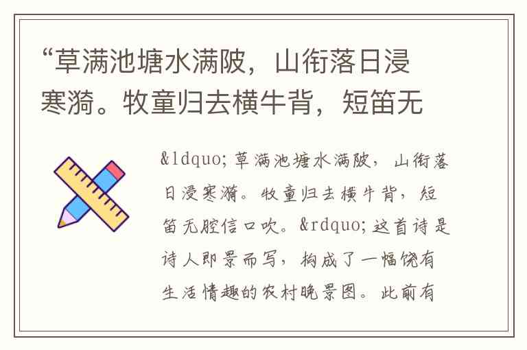 材料提到两首描写农村晚景的诗,由于诗人心情不同,对景物的描写也产生了不同——有的充满情趣,有的惆怅落寞,所以有“一切景语皆情语”之说。