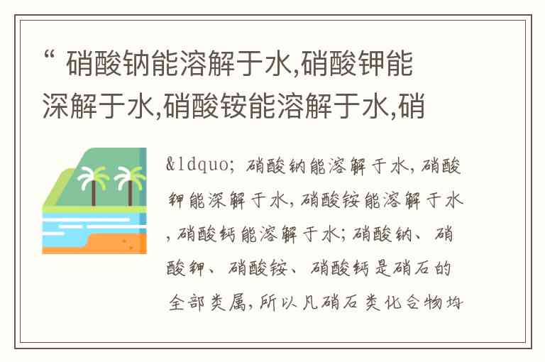 前提列举了硝酸钠、硝酸钾、硝酸铵、硝酸钙四种物质,并且说明它们都能溶解于水。