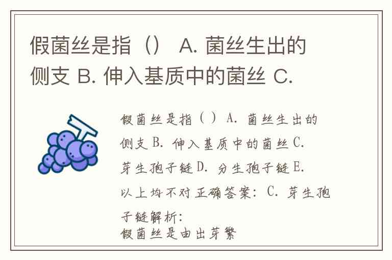 假菌丝是指() A. 菌丝生出的侧支 B. 伸入基质中的菌丝 C. 芽生孢子链 D. 分生孢子链 E. 以上均不对