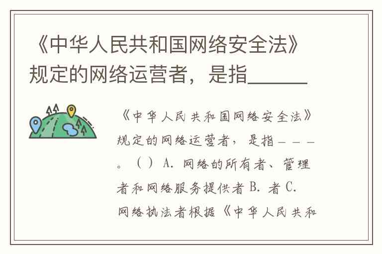 《中华人民共和国网络安全法》规定的网络运营者,是指___。() A. 网络的所有者、管理者和网络服务提供者 B. 者 C. 网络执法者