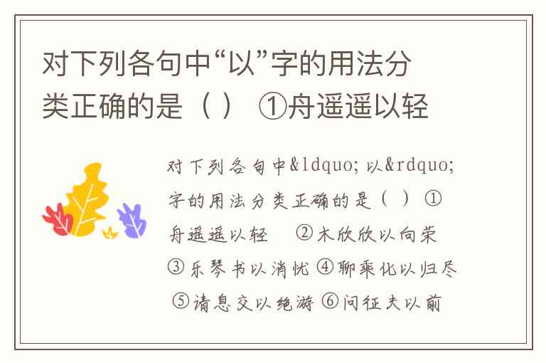 我们来看题干,每个句子都含有一个“以”,需要根据它们的用法归类。