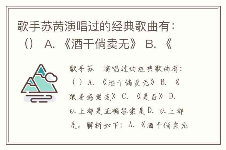 歌手苏苪演唱过的经典歌曲有:() A. 《酒干倘卖无》 B. 《跟着感觉走》 C. 《是否》 D. 以上都是