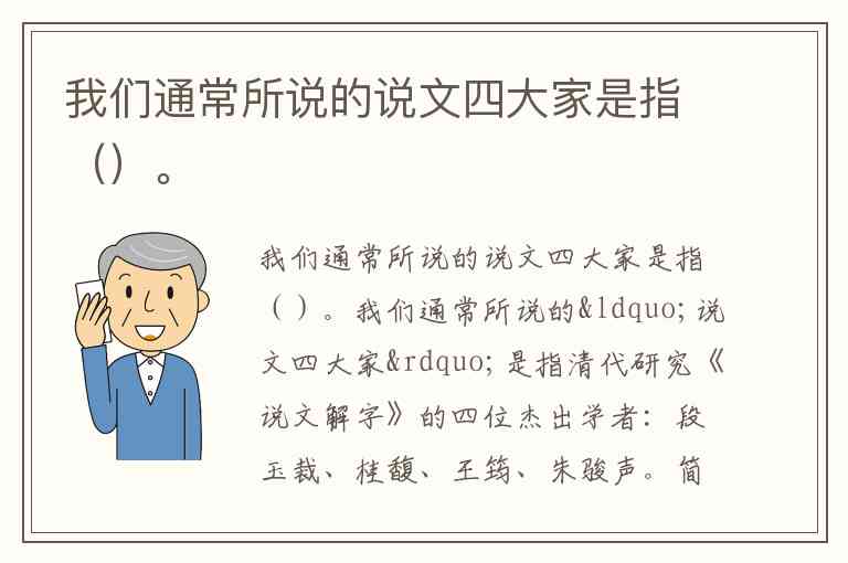 我们通常所说的“说文四大家”是指清代研究《说文解字》的四位杰出学者:段玉裁、桂馥、王筠、朱骏声。