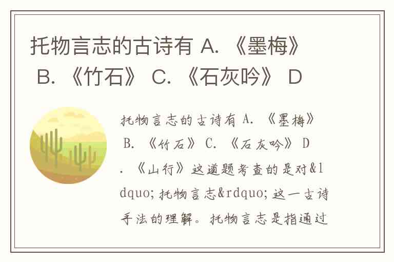 托物言志的古诗有 A. 《墨梅》 B. 《竹石》 C. 《石灰吟》 D. 《山行》