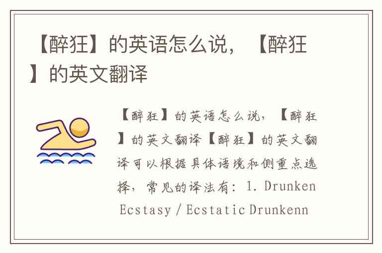 强调醉酒后狂喜、迷醉的状态,富有诗意和文学性。
