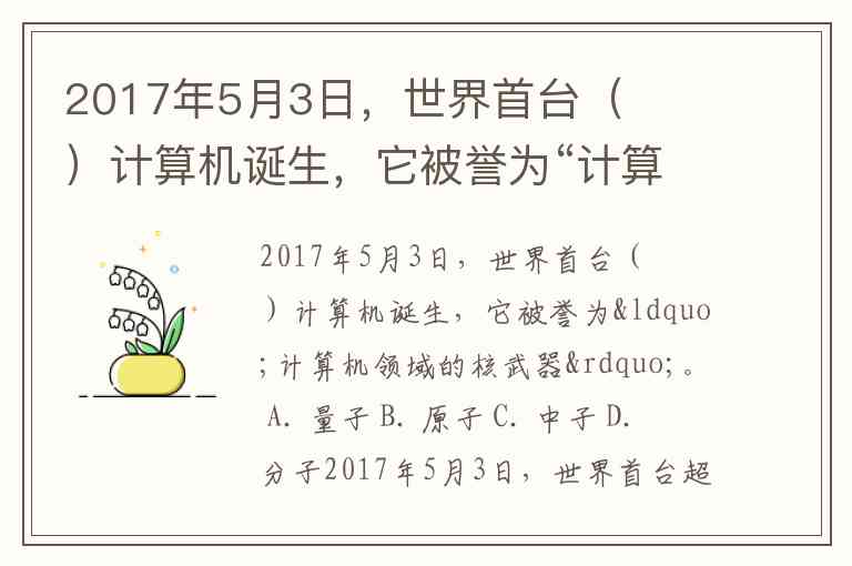 2017年5月3日,世界首台( )计算机诞生,它被誉为“计算机领域的核武器”。 A. 量子 B. 原子 C. 中子 D. 分子