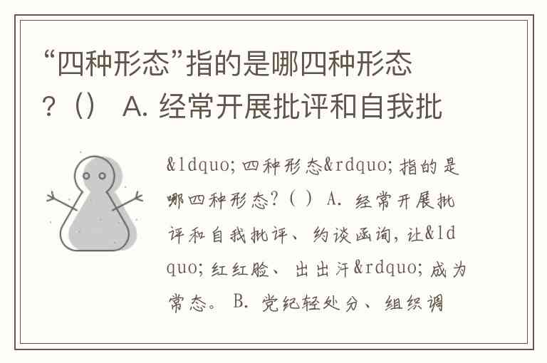 如果为单选题或多选题,常见正确选择为 A、B、C,但题目选项设置有时会把第二和第三形态合并在一个选项(如D)。根据中央纪委对“四种形态”的标准表述,完整四种形态是: