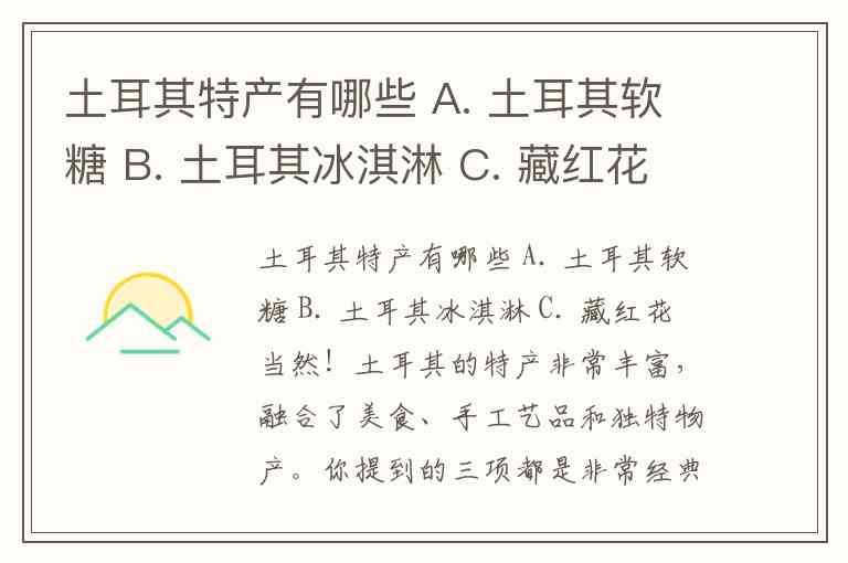 土耳其特产有哪些 A. 土耳其软糖 B. 土耳其冰淇淋 C. 藏红花
