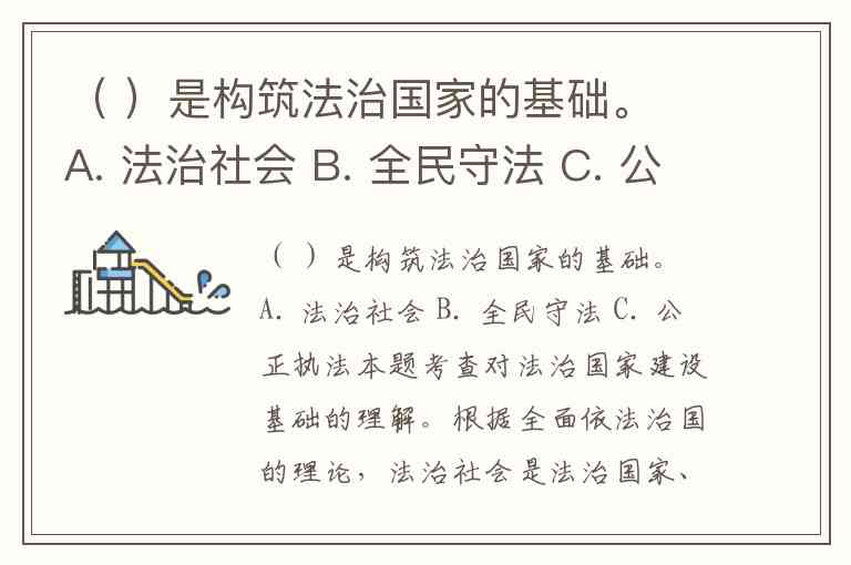 ( )是构筑法治国家的基础。 A. 法治社会 B. 全民守法 C. 公正执法