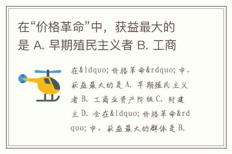 在“价格革命”中,获益最大的是 A. 早期殖民主义者 B. 工商业资产阶级 C. 封建主 D. 会