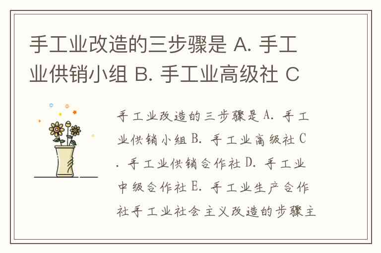手工业改造的三步骤是 A. 手工业供销小组 B. 手工业高级社 C. 手工业供销合作社 D. 手工业中级合作社 E. 手工业生产合作社