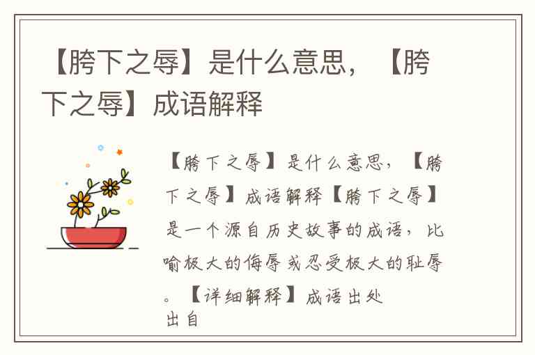 【胯下之辱】是一个源自历史故事的成语,比喻极大的侮辱或忍受极大的耻辱。