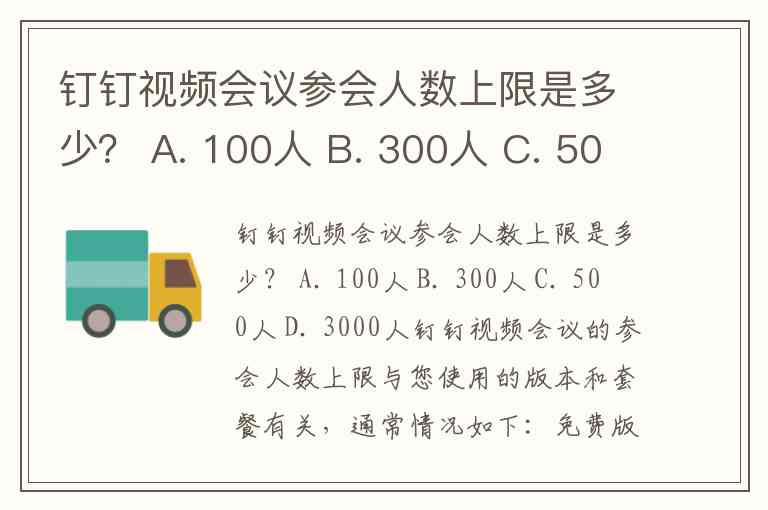 钉钉视频会议参会人数上限是多少? A. 100人 B. 300人 C. 500人 D. 3000人