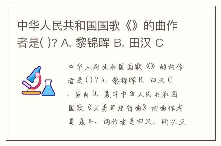 中华人民共和国国歌《》的曲作者是( )? A. 黎锦晖 B. 田汉 C. 黄自 D. 聂耳